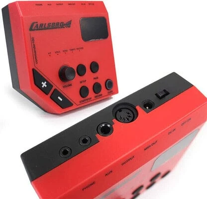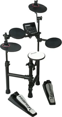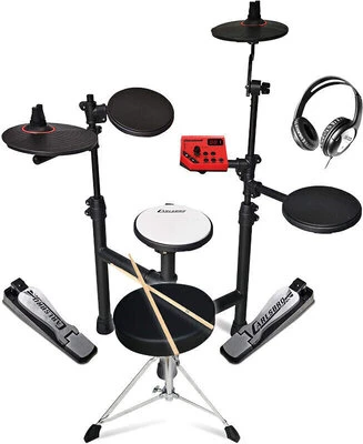 The CLUB 100 from Carlsbro, is a 5 Piece Electronic Drum Set. Fully adjustable to suit all needs. The CLUB 100 is extremely comfortable to play. Easy to set up and fold down when not in use, the CLUB 100 is the one of the most compact digital drum set kits available. The kits Commander 100 sound module gives access to 108 voices (drums, percussion, sfx) and 10 preset drum kits, including Jazz, Pop, Rock, Funk, Dance and more. Practice anywhere and at any time, just connect the comfortable Carlsbro CDN-2 headphones, with very little noise to others, while being easier to concentrate. Connect an MP3 or CD player to the Aux-in socket, play along and learn any song with ease. The built in metronome at the touch of a button will assist with more precise timing. Connect with a PC or Mac via a MIDI port (found on sound cards) and use with music sequencers, DAW or similar (not supplied) for extending kit sets, recording and more – the possibilities go on. A compact yet fully functional 5-piece electronic drum set, supplied with adjustable padded stool, comfortable headphones and a pair of drumsticks. Kids will love The CLUB 100 from Carlsbro.
