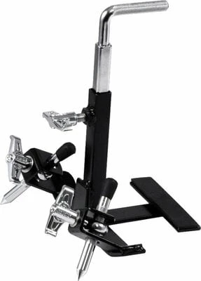 Holder for bass pedal and for cowbell with adjustable cowbell height. With this holder you can play cowbell with any bass pedal.