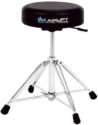 9000 Series Drummer Throne. Pneumatical height adjustment. Extremely solid, four-legged base. Double braced. Backrest seperately available. Round, strongly padded seat.