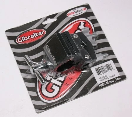 Multi clamp for mounting toms or accessory arms with 15.87-31.75mm diameter to standard 38mm diameter rack tubes.