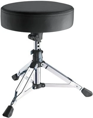 Low Rider! The smallest drum throne in the K&M series really does have depth. With a height adjustment from 363 to 453 mm, it is the ideal companion for drummers who prefer lower seating. It’s great for children too. There is a simple-to-use clamp with a patented push-button system for fine height adjustment in 15 mm steps. A comfortable clamping lever functions to provide extra stability and snug positioning. The small footprint diameter of 430 mm is ideal when space is restricted and is also a feature contribu- ting to the stability of the throne. The comfortable cushioned seat with a durable, tough imitation leather cover has a diameter of 300 mm and does an excellent job – even when you’re playing over long periods of time. The rotational stiffness can be freely adjusted from easy to taut. Weight: 2.6 kg. Colour: Chrome.