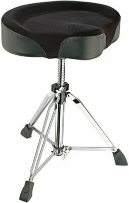 This drummer’s throne is comfortable, convenient and solidly manufactured. The ergonomically shaped and elaborately upholstered seat with sweat-reducing velvet cover balances superior posterior support and freedom of motion. The height adjustment is carried out by a robust rotary spindle. A two-piece plastic-lined clamp fixes the desired seat height. The continuous height adjustment ranges from 465 to 670 mm. A solid clamp connects the seat with the rotating spindle. The upper part remains rotatable even when fixed without self-adjustment of the spindle. The three double-braced legs and large rubber feet guarantee a stable stand. The matching carrying case 14003 is optionally available.