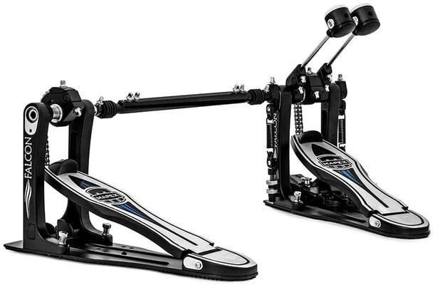 Double bass drum pedal from Falcon series with design that was influenced and road tested by a team of artists who want an incredibly smooth feel and simple adjustability. The settings are dialed-in at the factory, so it feels good right out of the bag with only minor adjustments needed to fit individual tastes. That means more time playing and less time adjusting. The interchangeable drives (sold separately part ACF-DD, and ACF-SD) allow players to purchase only one pedal, but still have the freedom to experiment with the differences between chain, strap, and direct drive feels. It also enables double-pedal players to use different drives for each pedal to balance the feel between the left and right feet. The interchangeable beater weights, variable footboard height, and adjustable beater angle allow for simple and fine adjustment of torque and power. The smaller size of the base-plate makes it easy to position a double-pedal around snare stand legs and closer to the hi-hat pedal.