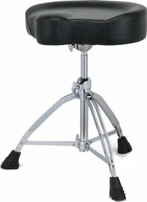 Mapex T855 professional chair with threaded seat height adjustment and with the Ultra Secure clamp / Spindle lock function to securely lock the set height. Double reinforced legs ensure stability. The massive 17×4″ “motorcycle” seat provides extra comfort during long sessions, and the black artificial leather surface is easy to clean.