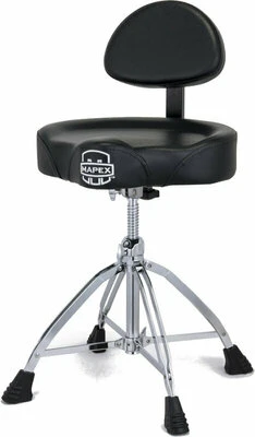 Mapex T875 professional chair with threaded seat height adjustment and with the Ultra Secure clamp / Spindle lock function to securely lock the set height. Four double-reinforced legs ensure stability and an adjustable backrest for greater comfort while playing. The massive 17×4″ “motorcycle” seat provides extra comfort during long sessions, and the black artificial leather surface is easy to clean.