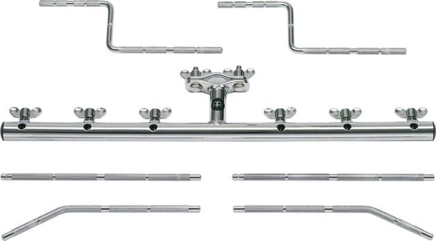 A mounting rail for percussions. It can be mounted on any stand and it is ideal addition to the percussion or drumset. 6-rail, 2 straight bars, 2 angled bars and 2 z-shaped support bars are included.