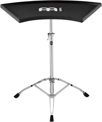Ergo Percussion Table. it’s designed for efficiency and stealth. The curved shape helps you to fit it into your set-up with no space wasted, while keeping everything within easy reach. The inner raised edge is padded, so that instruments may be picked up and set down with an absolute minimum of contact noise. Double braced legs keep it all secure and stable.