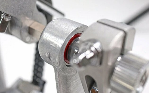 The Eliminator Redline L.T. (Light Transport) is the high-end Eliminator pedal line which is able to fold without changing the spring tension/beater angle or removing the beater. It is light, compact in size, has a smooth responsive action without a bottom plate and works well for all purposes.