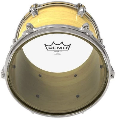 16″ Clear Diplomat. The Clear Diplomat® is Remo’s brightest, most open sounding head due to its single layer of 7.5-mil Mylar® film. They’re known for their bright tones, resonance, and sustain and as resonant (bottom) heads opening up the sound of tom-toms.