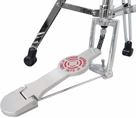 Hihat stand from Sonor 4000 series. Features new footboard design, rotating legs, double braced, adjustable spring tension, hex rod – no more loosening of the top Hi Hat cymbal, 7-step bottom cymbal tilter, 2-segment memory lock, ergonomically designed wing nuts. Colour: Chrome