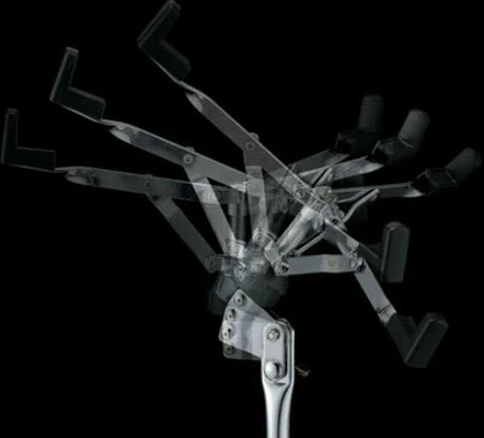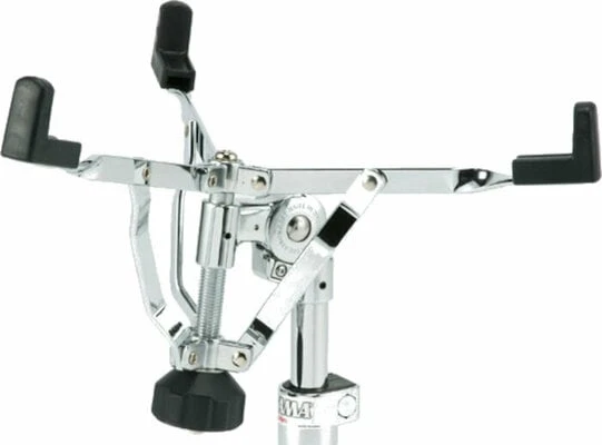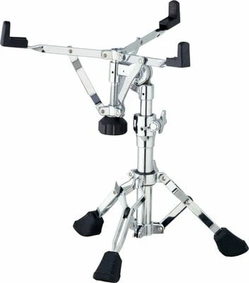 Snare drum stand. It is suitable for a 12″ and 15″ snare drum. It has low position setting basket, 28.6 mm diameter base section tubing, double reinforced legs and tilting option. It features easy handling and a wide range of setting options. The drum holder and stand legs are fitted with non-slip rubber. Adjustable in height: 385 mm – 530 mm. Colour: Chrome.