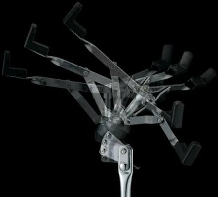 Snare drum stand from RoadPro series that is suitable for a drum with diameter of 10 to 12 inches and adjustable in height from 495 mm to 610 mm. It features an upgraded and patented Glide-Tite Grip Joint for a more secure attachment, patented Quick-Set Tilter, patented swivelling basket and escape claws, and nylon washers. The stand features a base with double braced legs and 28.6 mm diameter tubing.
