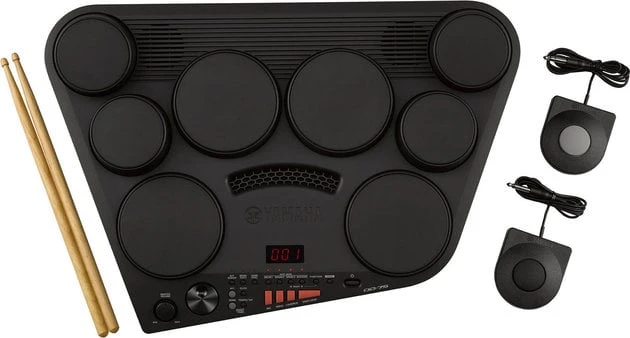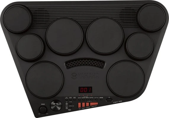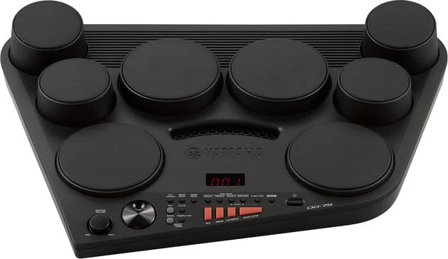 DD-75 is a digital drum kit with eight touch-sensitive pads and two foot pedals. High quality drum and wide variety of percussion sounds from all over the world are mixed with orchestra voices to provide a wide range of musical opportunities. AUX IN jack lets you connect and MP3 player and play along with your favorite music. The adapter is included.