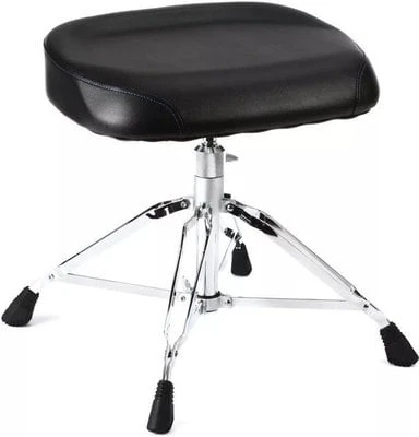 Drum stool with bench-style seat, double-braced guad legs and screw height adjustment.